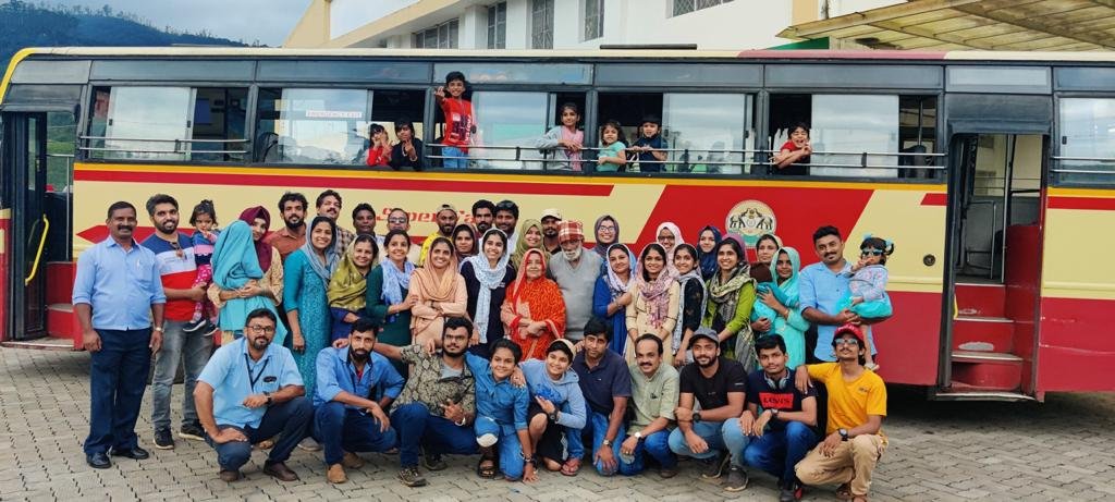 യാത്രയെക്കുറിച്ചുള്ള വിവരങ്ങളെല്ലാം അറിഞ്ഞപ്പോൾ, എല്ലായ്പ്പോഴും പ്ലാൻ ചെയ്യുകയും എന്നാൽ ഒരിക്കൽ പോലും നടക്കാതിരിക്കുകയും ചെയ്ത 'ഫുൾ ഫാമിലി' ട്രിപ്പ് എന്ന ആശയം ഒന്നുകൂടെ പൊടിതട്ടിയെടുത്താലോ എന്ന ചോദ്യം ഞങ്ങളുടെ ഫാമിലി വാട്സ് ആപ്പ് ഗ്രൂപ്പിൽ ചർച്ചക്ക് വന്നു. പത്രത്തിൽ കണ്ട നമ്പറിൽ ഫോൺ ചെയ്തപ്പോൾ വളരെ പ്രൊഫഷണൽ ആയ രീതിയിൽ ഞങ്ങളുടെ ചോദ്യങ്ങൾക്ക് മറുപടി തന്നു. 26 കുടുംബാംഗങ്ങൾ പങ്കെടുക്കുന്ന യാത്രക്ക് ഞങ്ങൾ ഉറപ്പു പറഞ്ഞതോടെ ഇനിയുള്ള ബന്ധപ്പെടലെല്ലാം വാട്സ് ആപ്പിലൂടെ ആവും എന്നും, നിരവധി ഫോൺകോളുകൾ വരുന്നത് കൊണ്ട്, ഇനി വിളിക്കേണ്ടതില്ലെന്നും വിവരങ്ങളെല്ലാം പറഞ്ഞു കൊണ്ട് അവർ തന്നെ മെസേജ് ചെയ്യുമെന്നും പറഞ്ഞു. അങ്ങനെ ഒക്ടോബർ 24 ന് ഞങ്ങൾ, 76 വയസുള്ള ഉമ്മമ്മയും 82 വയസുള്ള ഉപ്പപ്പയും മക്കളും പേരമക്കളും അവരുടെ മക്കളും ചേർന്ന വലിയൊരു സംഘം ഉച്ചയോടെ മലപ്പുറം KSRTC ഡിപ്പോയിൽ എത്തി. ബസ്സിൽ ഞങ്ങളെ കൂടാതെ വേറെയും യാത്രക്കാരുണ്ട്. ചിലരൊക്കെ കുടുംബമാണ്, 6 മാസം മാത്രം പ്രായമായ കുഞ്ഞിനേയും കൊണ്ട് യാത്രചെയ്യുന്നവർ, ഗൾഫ് വെക്കേഷനിലെ എണ്ണപ്പെട്ട നാളുകൾ ആസ്വദിക്കാനെത്തിയവർ, വേറെ ചിലർ കൂട്ടുകാരോടൊപ്പം, മറ്റു ചിലർ ഒറ്റക്ക്, വീട്ടിൽ പോലും പറയാതെ ബാഗുമെടുത്ത് ഇറങ്ങിയവർ... ഒന്നരയോടെ പുറപ്പെട്ട ചുവപ്പും മഞ്ഞയും നിറമുള്ള സൂപ്പർ ഫാസ്റ്റ് ആനവണ്ടിയിൽ 2-3 പേർ എടപ്പാളിൽ നിന്നും മറ്റുമായി കേറി, ഞങ്ങളുടെ തന്നെ കുടുംബത്തിലെ നസി താത്തയും അരീജാക്കയും മക്കളും അങ്കമാലിയിൽ നിന്നാണ് ഞങ്ങളോടൊപ്പം ചേർന്നത്. മലപ്പുറത്ത് നിന്ന് വണ്ടി പുറപ്പെട്ടപ്പോൾ തന്നെ കണ്ടക്ടർ ബസ്സിൽ ഒരു മൈക്ക് സൂക്ഷിച്ചിട്ടുണ്ടെന്ന് വളരെ സർപ്രൈസ്സോടെ അനൗൺസ് ചെയ്തു. അതോടെ പിന്നെ ഓരോരുത്തരായി ബസ്സിന് മുന്നിൽ വന്നു സ്വയം പരിചയപ്പെടുത്തിത്തുടങ്ങി. ഡ്രൈവർ സജീഷ് പനക്കൽ, കണ്ടക്ടർ യൂസഫ് പിന്നെ സഹയാത്രികർ... തമാശ നിറഞ്ഞ പരിചയപ്പെടൽ സെഷനോടെ മൈക്കിനു പിന്നെ വിശ്രമമില്ലെന്നായി, താളത്തോടെയും അല്ലാതെയും, ഒറ്റക്കും കൂട്ടമായും, ലിറിക്സ് നോക്കിയും അല്ലാതെയുമായി ആകെ കൂട്ടപ്പാട്ടായി. അതോടുകൂടി ബസ്സിലെ എല്ലാവരും ഒരൊറ്റ കുടുംബമായി മാറാൻ അധികം സമയമെടുത്തില്ല. കണ്ടക്ട്ടർ പറഞ്ഞത് പ്രകാരം കുറച്ച് അടിപൊളി പാട്ടുകളടങ്ങുന്ന USB യും കൊണ്ടാണ് നസിതാത്തയുടെ കുടുംബം അങ്കമാലിയിൽ നിന്ന് കേറിയത്, അതോടെ പ്രൈവറ്റ് ബസ്സിലെ ചാടിക്കളികളെ വെല്ലുന്ന, എന്നാൽ ബസ്സിലെ വിവിധ പ്രായക്കാരെക്കൂടെ പരിഗണിച്ചുള്ള ഡാൻസും പാട്ടും എല്ലാമായി ഞങ്ങളുടെ ആനവണ്ടി അടിമാലിയിലെ ഒരു ഹോട്ടലിൽ എത്തി. ബില്ലിൽ വലിയ 'അറവ്' ഒന്നുമില്ലാത്ത, എന്നാൽ വളരെ രുചികരമായ ഭക്ഷണവും കഴിച്ച് അവിടെ നിന്ന് ഞങ്ങൾ നേര്യമംഗലം ചുരം കേറിത