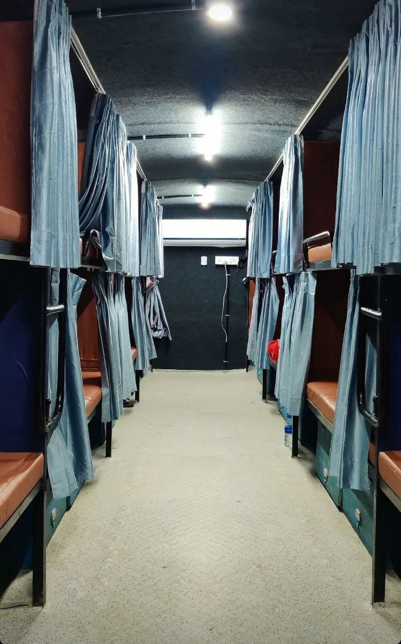 9.30 ഓടെ വണ്ടി മൂന്നാർ KSRTC ഡിപ്പോയിൽ എത്തി. ഡിപ്പോയിൽ വരിക്ക് ഒതുക്കിനിർത്തിയിരിക്കുന്ന സ്ലീപ്പറുകൾ ഞങ്ങളുടെ രാത്രിയുറക്കത്തിന് വേണ്ടി അപ്പോഴേക്കും സജ്ജമായിട്ടുണ്ടായിരുന്നു. ഒരുകാലത്ത് നിരത്തിൽ യൗവനത്തിന്റെ എല്ലാ പ്രൗഢിയോടെയും കൂടി ഓടിയിരുന്ന ബസ്സുകളാണിവ. എന്നാൽ നന്നാക്കിയെടുക്കാൻ പാറ്റാത്തത്രയും എൻജിൻ മോശമായപ്പോൾ, ഈ വണ്ടിയുടെ തന്നെ ബോഡിയെ എങ്ങനെ ഉപയോഗപ്പെടുത്താം എന്ന ആശയത്തിൽ നിന്നാവണം ഇങ്ങനെ ഒരു ചിന്തയുണ്ടായിട്ടുണ്ടാവുക. 2nd ടയർ AC സ്ലീപ്പർ ട്രെയിൻ കോച്ചിനെ വെല്ലും വിധമാണ് ബസ്സിനുൾഭാഗം ഒരുക്കിയിരിക്കുന്നത്. കേറി വരുന്നിടത്ത് വാഷ്ബേസിനും വാട്ടർ ഔട്ലെറ്റും ചാർജിങ് പ്ലോട്ടും ഡൈനിങ് ടേബിളും ഇരിപ്പിടവും എല്ലാമുണ്ട്. കർട്ടനിട്ട ബെർത്തുകൾ, നൈറ്റ് ലൈറ്റ്, AC, മൂന്ന് ഇന്റീരിയറോടുകൂടിയ സ്ലീപ്പറുകൾ... അങ്ങനെ ഇത് നമ്മുടെ KSRTC ബസ്സ് തന്നെയാണോ എന്ന് ശങ്കിച്ചു പോവുന്ന സൗകര്യം. തൊട്ടടുത്തായി തന്നെ ബാത്റൂമുകളും ടോയ്ലെറ്റുകളും വാഷ്ബേസിനുകളും വൃത്തിയോടെ ഒരുക്കിയിട്ടുണ്ട്. ഈ സൗകര്യങ്ങളെല്ലാം ഉപയോഗപ്പെടുത്താൻ നമ്മൾ ഈ KSRTC ട്രിപ്പിൽ തന്നെ വരണമെന്ന നിർബന്ധമില്ല. മൂന്നാറിൽ എത്തിയ ആർക്കും 100 രൂപ അടച്ചു ഇവിടെ അന്തിയുറങ്ങാം, വളരെ സുരക്ഷിതത്വത്തോടെ...