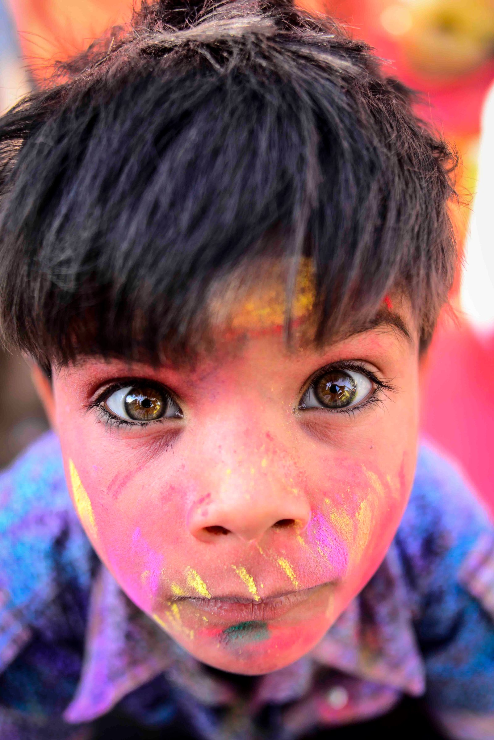 പിറ്റേന്ന് അതി രാവിലെ എണീറ്റ് ഞാൻ അത്യാവശ്യം കുറച്ചു സാധങ്ങൾ വാങ്ങാൻ പുറത്തിറങ്ങി. മന്ദിറിൽ നിന്നും കുറച്ചു നടക്കണം അടുത്തുള്ള കടയിലേക്ക്, പോകുന്ന വഴിയിൽ പല നിറത്തിലുള്ള ഹോളി പൊടികൾ വില്പനക് വെച്ചിട്ടുണ്ട് ആ തെരുവ് മുഴുവൻ. തെരുവ് നിറങ്ങൾകൊണ്ട് നിറയും ഹോളി തീരുമ്പോഴേക്ക്. ഒരു ഉന്തുവണ്ടിയിൽ ഇരുന്ന് ഈ പയ്യൻ ഹോളി പൊടികൾ വിൽക്കുകയായിരുന്നു. മുഖത്തു ലേശം ചായം പൂശിയിട്ടുണ്ട്. സാധനങ്ങൾ വാങ്ങാനിറങ്ങിയത് കാരണം ക്യാമറ എടുത്തിട്ടില്ലായിരുന്നു. വളരെ പെട്ടെന്ന് എൻ്റെ നോട്ടം അവന്റെ കണ്ണുകളിലേക്ക് പോയി, നല്ല പച്ചക്കണ്ണ്. ഞാൻ ഒരു നിമിഷം പോലും കളയാതെ ക്യാമറയെടുക്കാൻ തിരിച്ചു മന്ദിറിലേക് ഓടി. ക്യാമറ എടുത്തു തിരിച്ചു വരുമ്പോയേക്കും അവൻ അവിടെ നിന്നും പോയാലോ എന്ന് ശങ്ക ഉണ്ടായിരുന്നു. പക്ഷെ ചെക്കൻ അവിടെ തന്നെ ഇരുന്നു കച്ചോരി തിന്നുകയായിരുന്നു. ഞാൻ പടമെടുക്കാൻ റെഡിയായി. ആ സമയം ഒരാൾ വന്നു വെറുതെ ഇടങ്കോൽ ഇടാൻ തുടങ്ങി. അടുത്തുള്ള കച്ചവടക്കാരൻ ആയിരുന്നു. ഫോട്ടോ എടുക്കാൻ പറ്റില്ല എന്ന് പറഞ്ഞു എന്നോട്. പക്ഷെ എനിക്ക് ആ പടം വേണമായിരുന്നു. ഞാൻ പറഞ്ഞു ഒറ്റ ഫോട്ടോ മതി എനിക്ക് ഇവൻന്റെ കണ്ണ് ഇഷ്ടമായി. ഒരു ഫോട്ടോ എടുത്തോട്ടെ? ആവശ്യം എന്റേതായതു കാരണം ഞാൻ താഴ്ന്നു കൊടുത്തു. ഒരു ഫോട്ടോ എടുത്താ മതി, അയാൾ സമ്മതിച്ചു. ആദ്യം ഞാൻ eye contact ഉണ്ടാക്കി ചെക്കനെ comfortable ആക്കി. ചെക്കൻ നല്ല അടിപൊളി പോസ് തന്നു. ഞാൻ പയ്യന്റെ മുഖത്തിന്റെ close പോയി കണ്ണിൽ ഫോക്കസ് ചെയ്തു ഈ പടം അടിച്ചു. അയാൾക്ക് കാണിച്ചു കൊടുത്തു. "അച്ഛാ ഹെ" അയാൾ എന്നോട് പറഞ്ഞു. വേണമെങ്കിൽ ഇനിയും ഫോട്ടോ എടുത്തോളൂ അയാൾ അല്പം അയഞ്ഞു. ഞാൻ പല ആംഗിളിലും മതിയാകുന്നത് വരെ അവൻ്റെ മുഖം എടുത്തു. അവസാനം കച്ചറ ഉണ്ടാക്കിയ ആളുടെയും സുഹൃത്തുക്കളുടെയും കൂടി ഫോട്ടോ എടുത്താണ് മടങ്ങിയത്.